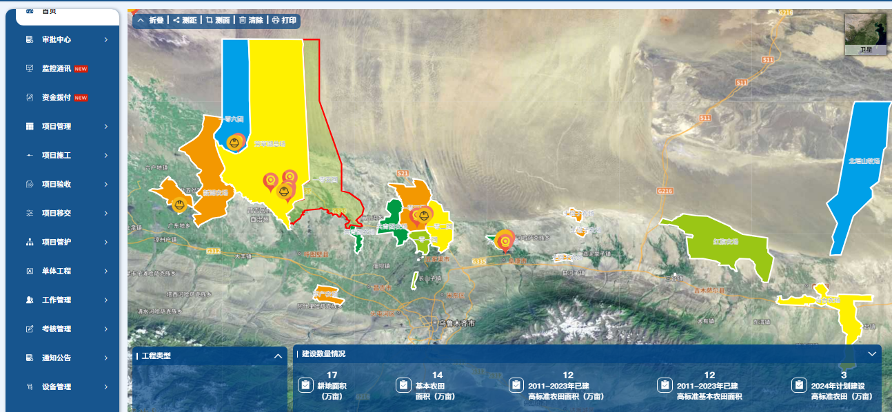 为加强高标准农田建设质量管理,推动第六师农田建设高质量发展,根据《建设工程质量管理条例》《基本农田保护条例》等法律法规以及《国务院办公厅关于切实加强高标准农田建设提升国家粮食安全保障能力的意见》(国办发〔2019〕50号)、《农田建设项目管理办法》(农业农村部令2019年第4号)的要求,第六师农业局利用现代化手段对高标准农田建设的项目实行全程动态监管,建立“六师高标准农田全流程监管平台”。图为:第六师高标准农田建设监管平台项目图层
